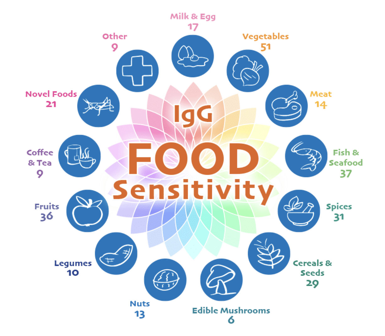 The IgG food test measures immunoglobulin (IgG) antibodies to a variety of common foods. Elevated IgG antibodies can indicate food sensitivities and can promote systemic (whole-body) inflammation, leading to a variety of unwanted symptoms.